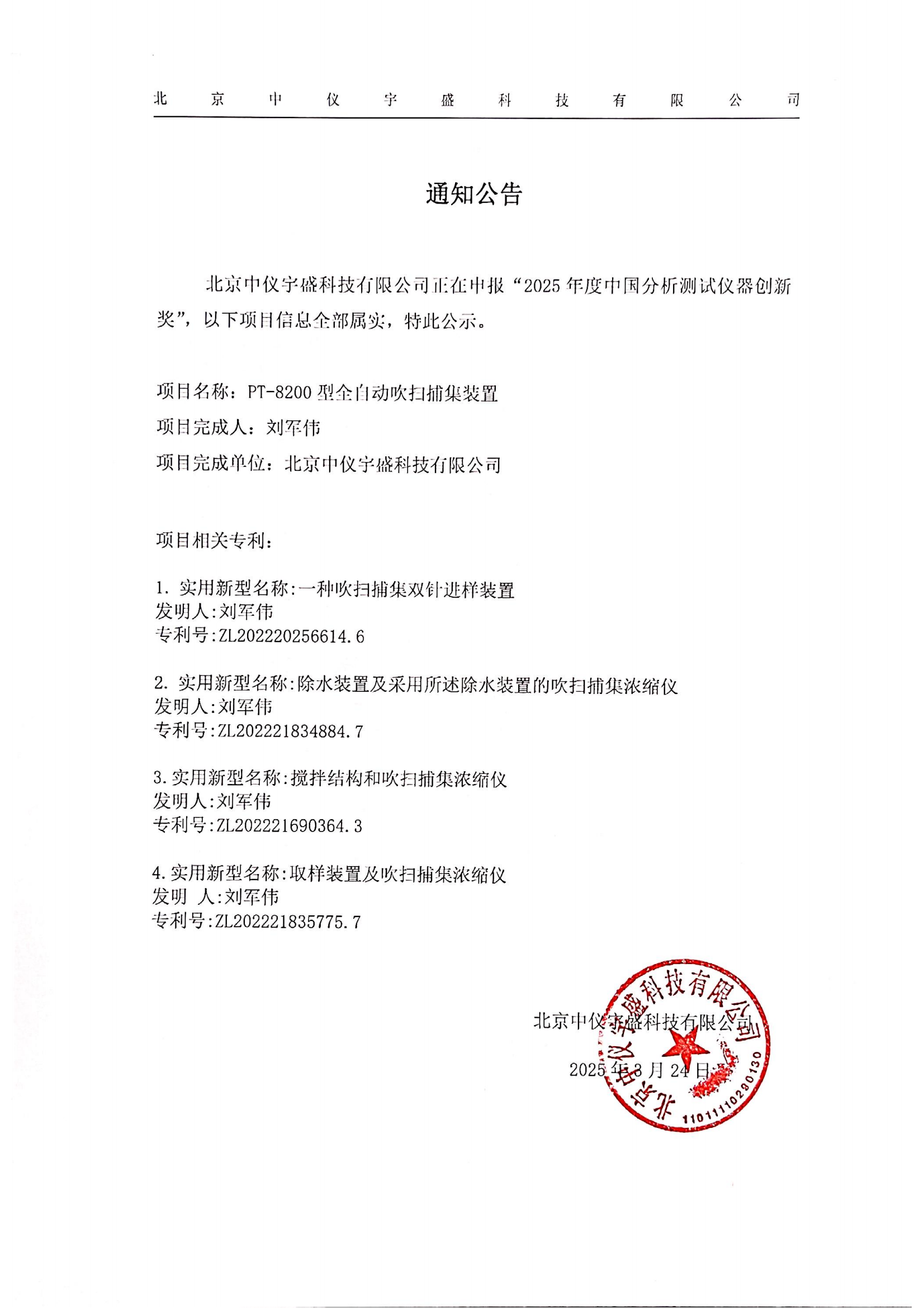• 關(guān)于北京中儀宇盛申報(bào)“2025年度中國(guó)分析測(cè)試儀器創(chuàng)新獎(jiǎng)”的 2025-03-24